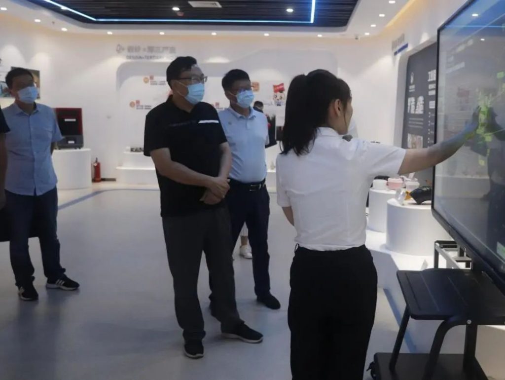 董部長一行參觀了中原工業設計城展廳,聽取了河南同天副總經理王磊對展廳各產業區域的詳細介紹,了解了設計城的發展現狀與未來發展布局。并對設計城入駐企業的發展情況進行了詳細詢問和了解。并表示要緊抓園區民營經濟發展,加快工業設計與一產、二產、三產融合發展,促進焦作民營經濟高質量前進。
